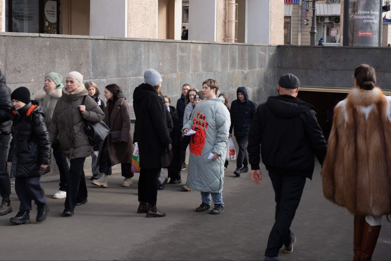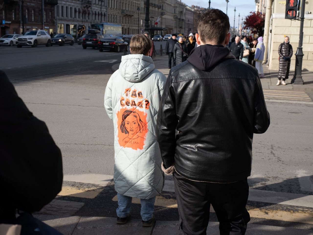 Детали. Патяева вышла на Невский проспект в куртке с надписью «Где Седа?». Девушка приклеила несколько листовок к домам на улице и раздала прохожим листовки о Сулеймановой.