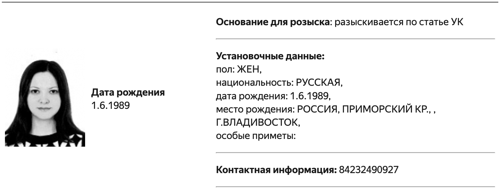 МВД объявило в розыск ЛГБТК-активистку из Владивостока Татьяну Намазбаеву, которую в прошлом феврале внесли в реестр «иностранных агентов». Внимание на карточку розыска в базе ведомства обратила «Медиазона».