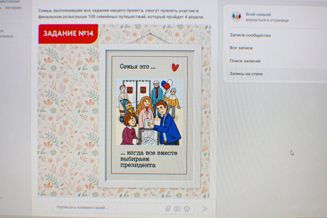 Однако 14 марта проект опубликовал 14-е задание: всей семьей прийти на выборы и опубликовать фотографию совместного участия в голосовании. Среди призов за выполнение задания: путевки, сертификаты от OZON, книги на «ЛитРес», фотоальбомы и умная колонка «Маруся».