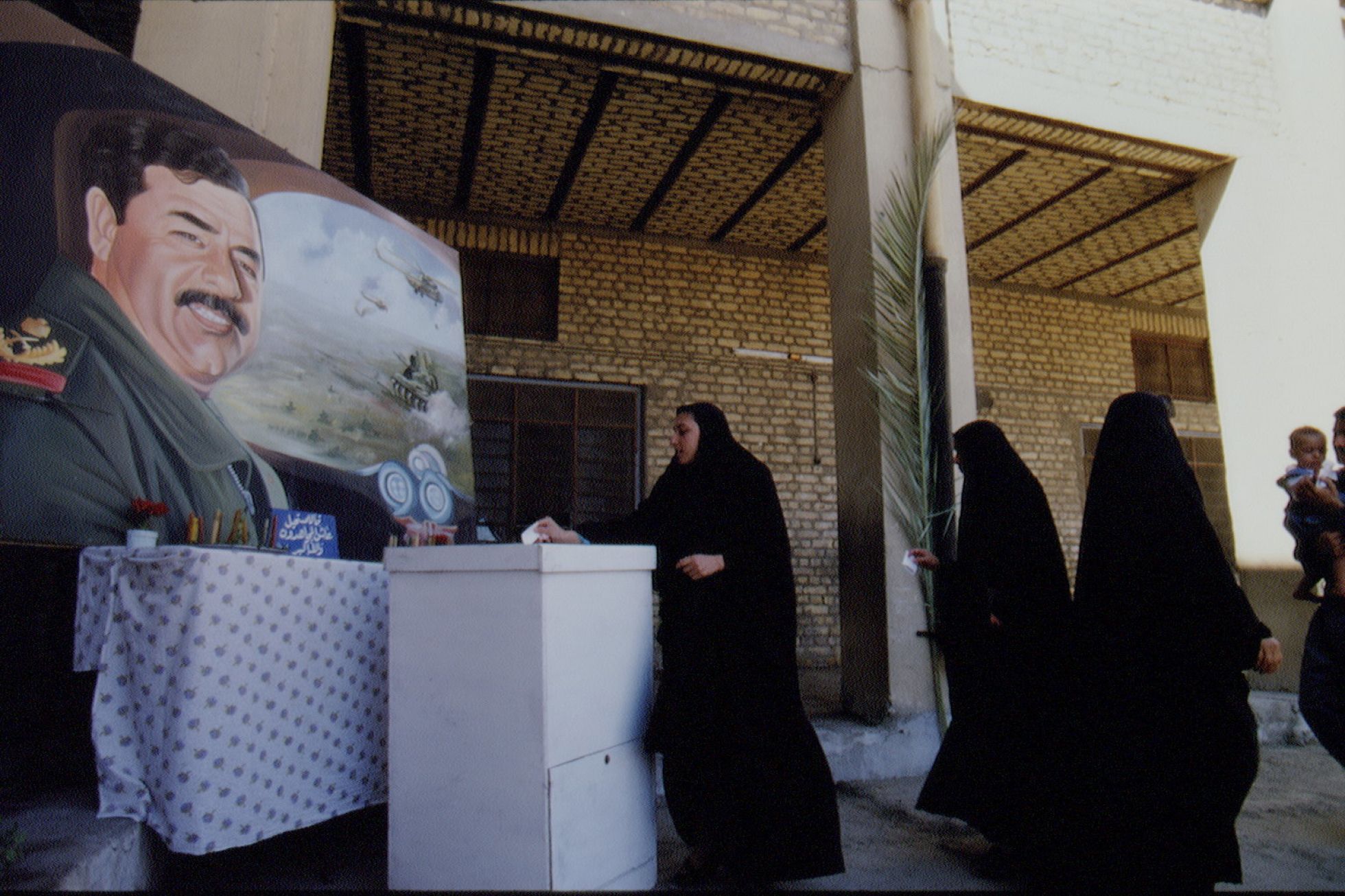 Следующий референдум о продлении полномочий Саддама должен был пройти в 2002 году — по истечении семилетнего срока, как предполагали принятые в 1995 году поправки. На тот момент уже полным ходом шли разговоры о возможном вторжении США в Ирак: администрации Джорджа Буша — младшего после терактов 11 сентября было необходимо показать американцам, что власти способны защитить их, и Хусейн идеально подошел на роль врага. В 2002-м Белый дом на протяжении многих месяцев пытался заручиться международной поддержкой, утверждая, что Саддам связан с «Аль-Каидой», и требуя от Совета Безопасности ООН санкционировать военную операцию. Иракские власти на этом фоне стали продвигать идею о том, что жителям страны необходимо «сплотиться вокруг национального лидера».