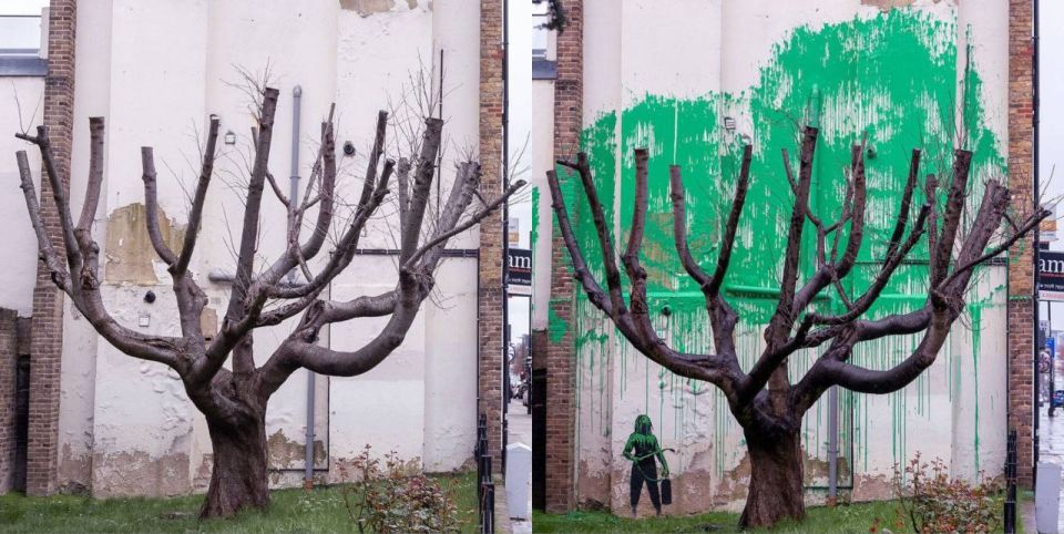 В Лондоне появился новый мурал Бэнкси: художник нарисовал крону обрезанному дереву