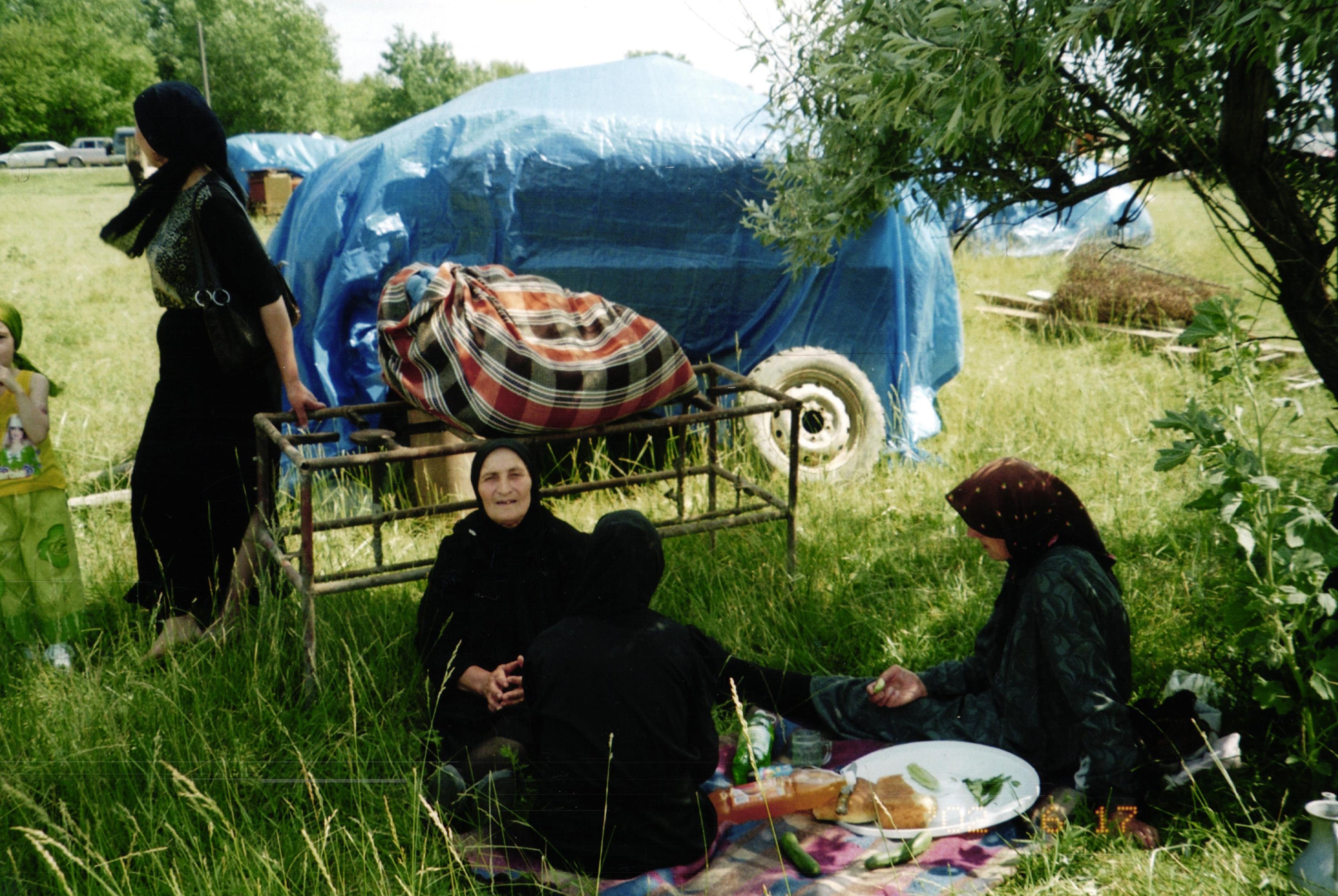 Основной поток беженцев приняла Ингушетия, рассказывает Фатима Газиева – правозащитница, помогавшая пострадавшим от войн в Чечне. По ее словам, первый палаточный лагерь появился в станице Орджоникидзевская, в народе ее называли Слепцовская, затем, почти сразу, – в Карабулаке, станице Троицкой и Назрани.