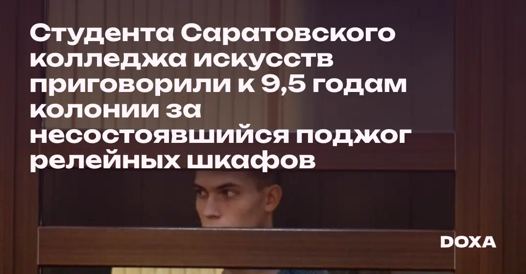 Студента Саратовского колледжа искусств приговорили к 9,5 годам колонии строгого режима за несостоявшийся поджог релейных шкафов. Его подругу, которой было 17 лет на момент поджога, — к 4,5 года колонии общего режима.