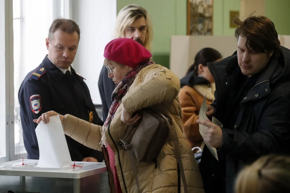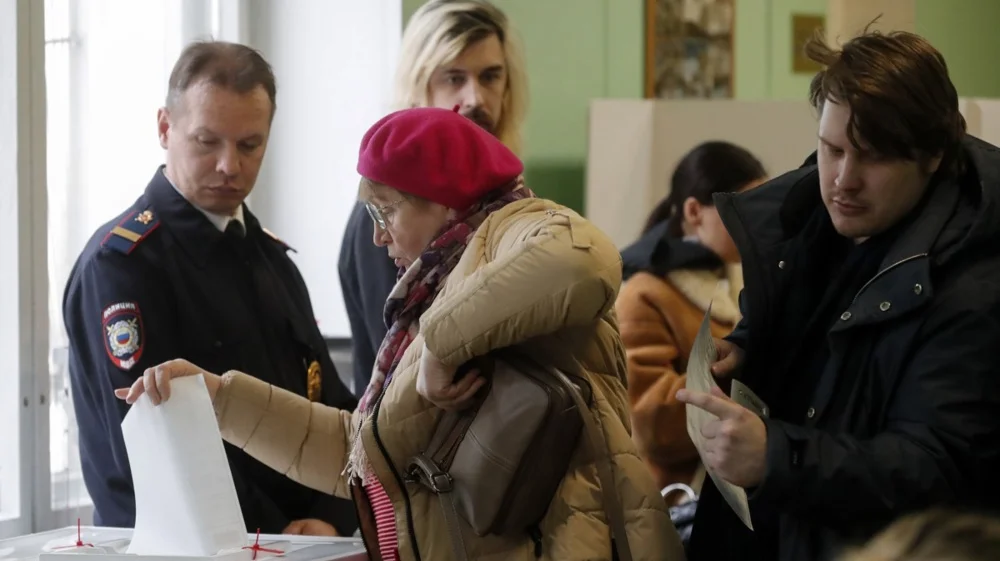 People cast their ballots during the presidential election in Moscow, 17 March 2024. Photo: EPA-EFE/MAXIM SHIPENKOV