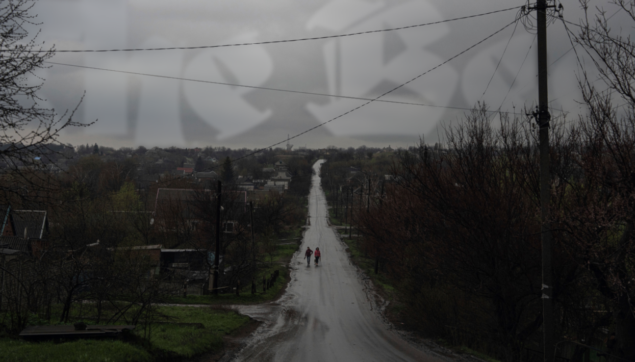 The rumble of explosions sounds in the distance on a desolate street in Kostiantynivka. Once a residential area, many of the houses here bear the marks of war, from windows boarded up with wooden planks to roofs caved in by missile strikes.