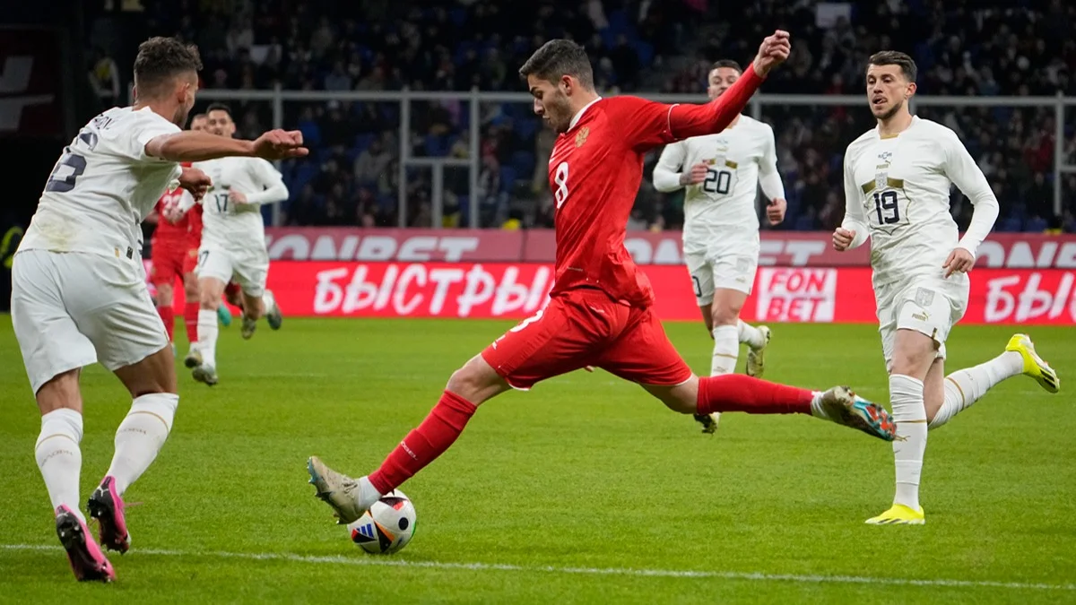 Сборная России по футболу в товарищеском матче разгромила на стадионе «Динамо» сербов (4:0)
