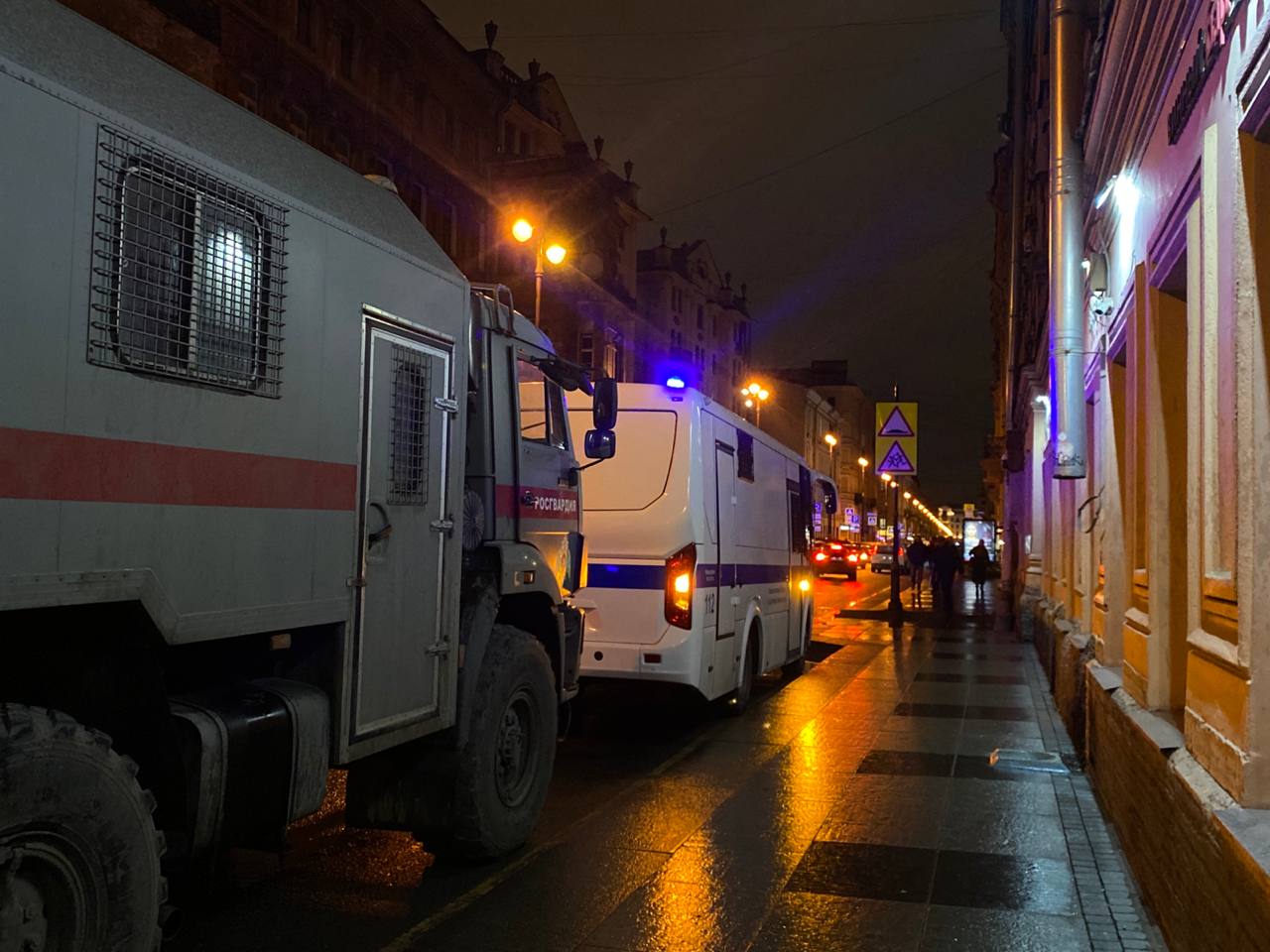 Сотрудники бара technodoner рассказали, что закрыли заведение по требованию полиции. В другом баре заявили, что закрылись по «техническим причинам». На улице Рубинштейна стоит полицейская машина и автозак.