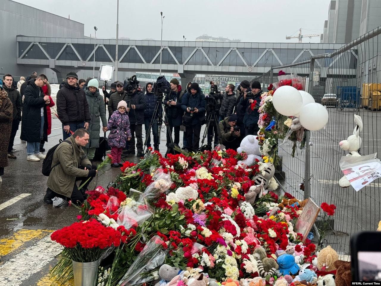 Люди в Москве несут цветы, свечи и детские игрушки к "Крокус Сити Холлу", по всей стране – к стихийным мемориалам. За рубежом жители возлагают цветы рядом с российскими дипмиссиями.