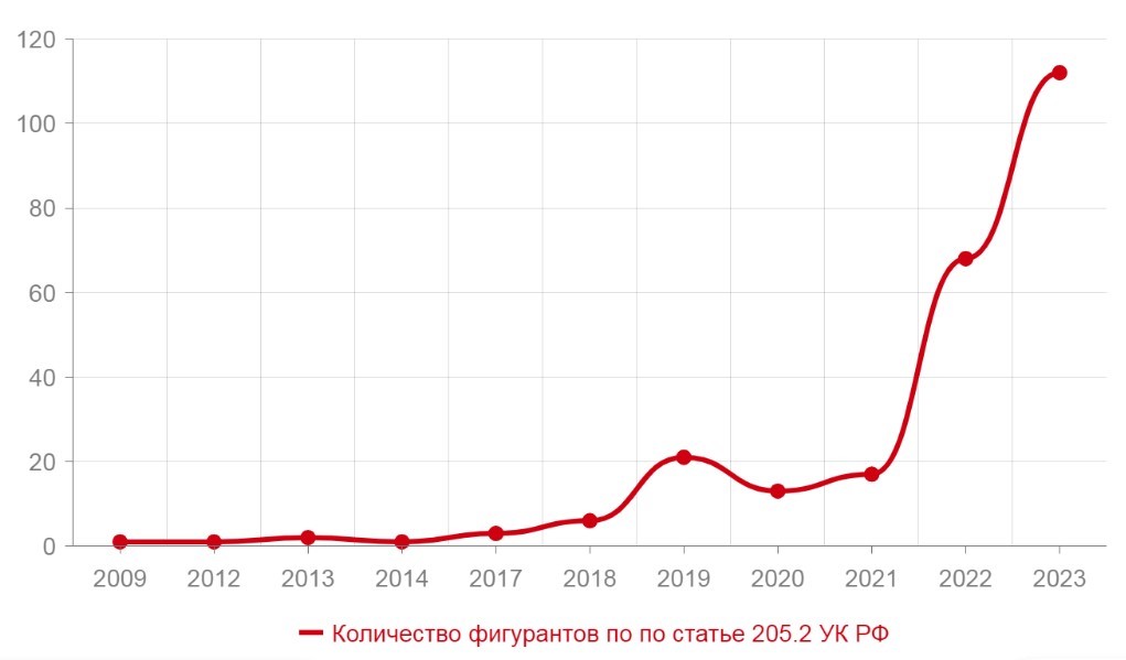 По статистике, которую ведёт правозащитный проект "ОВД-Инфо", в 2013 году обвиняемых по этой статье было двое. В 2018 году – шестеро. В 2019 году – 21. В 2022 году – 68. А в 2023-м – уже 112. Таким образом, можно констатировать почти двукратный рост за последние два года и на два порядка – за всю историю наблюдений. В "ОВД-Инфо" полагают, что эта динамика говорит о намерении властей "поднять цену" публичной критики и одновременно о расширении репрессивного инструментария после начала полномасштабной войны с Украиной.