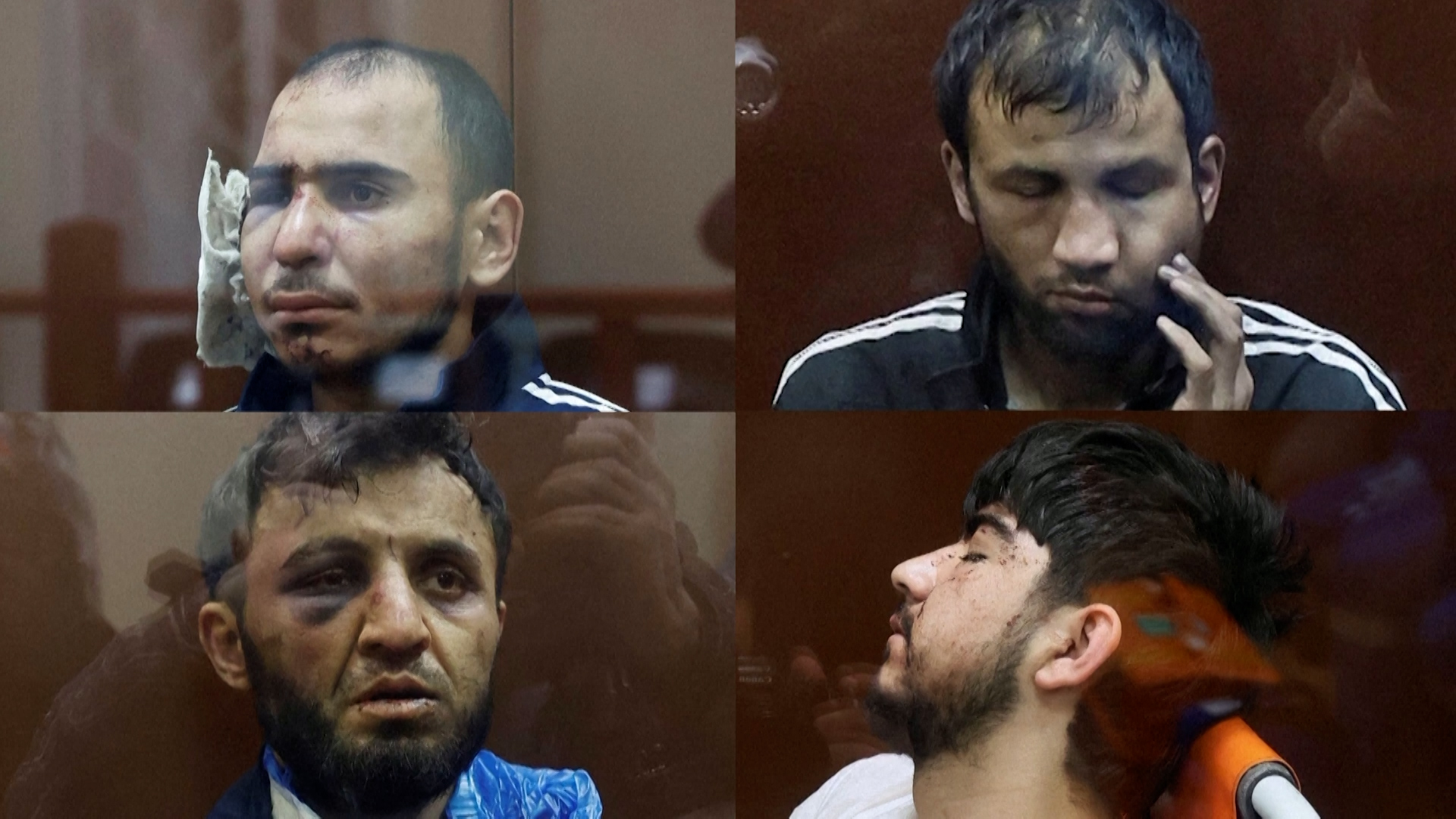 Басманный суд начал арестовывать обвиняемых по делу о нападении на "Крокус" в ночь с воскресенья на понедельник. Первые четверо обвиняемых поступили в суд со следами избиений и пыток. Двое, как утверждается, признали вину.