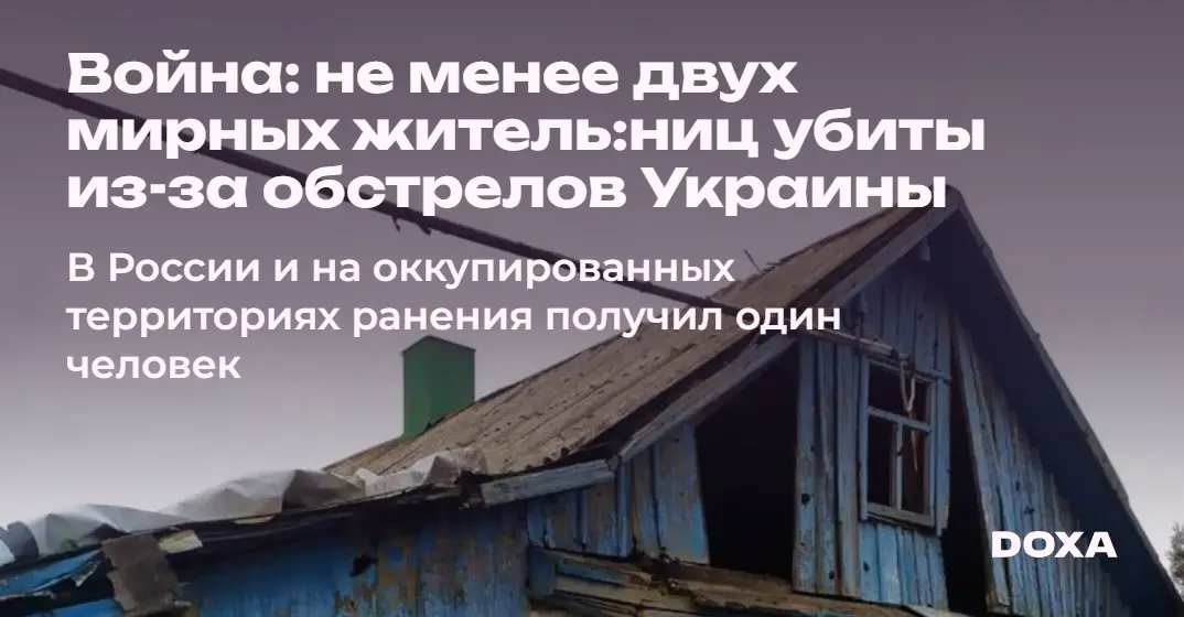 По меньшей мере две мирны:е житель:ницы Украины были убиты в результате обстрелов российской армии. Еще восемь человек получили ранения. Россия обстреляла Донецкую, Херсонскую, Харьковскую, Николаевскую, Днепропетровская и Сумскую области Украины, сообщили сегодня администрации этих регионов. В результате обстрелов со стороны украинской армии в России и на оккупированных территориях один мирный житель получил ранения, сообщили администрации регионов и оккупационные власти. Под обстрел попали ДНР и Белгородская область.
