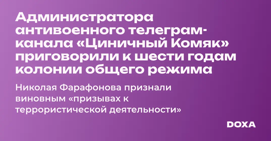 К шести годам колонии общего режима приговорили Николая Фарафонова, администратора антивоенного телеграм- канала «Циничный Комяк».