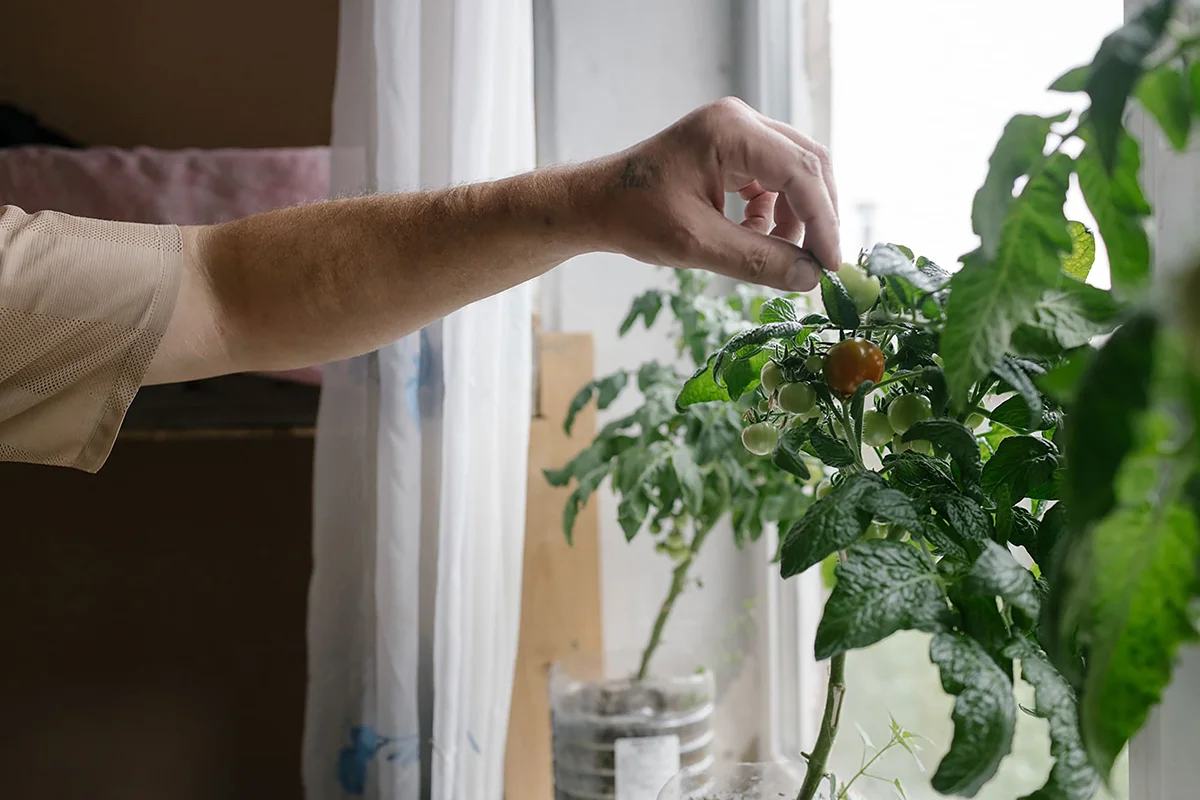 Помидоры черри растут на окне богадельни. Фото: Ксения Булавинцева