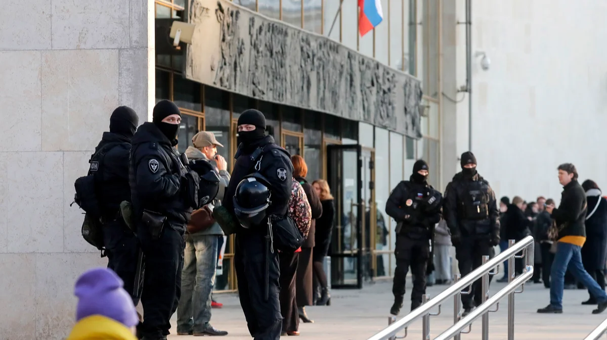 Сотрудники полиции у концертного зала «Октябрьский», Санкт-Петербург, 27 марта 2024 года. Фото: Анатолий Мальцев / EPA-EFE