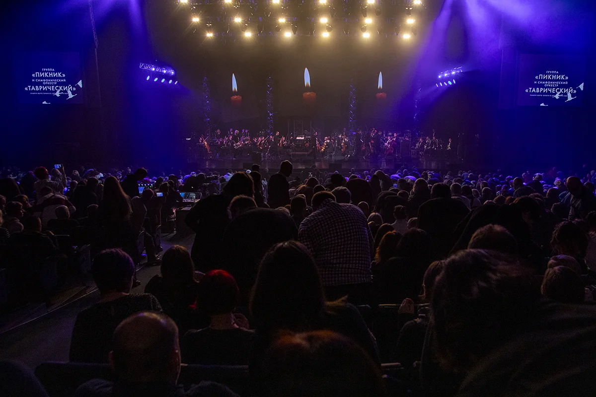 Перед выходом артистов на сцену над залом пронеслось: «Все средства от концерта будут направлены пострадавшим и семьям погибших в террористической атаке». Участники группы «Пикник», все — в черном, вышли на сцену в сопровождении симфонического оркестра «Таврический» и начали концерт с минуты молчания. Весь зал молча встал и действительно не проронил ни звука. Но молчаливой была не только эта минута, а весь концерт.