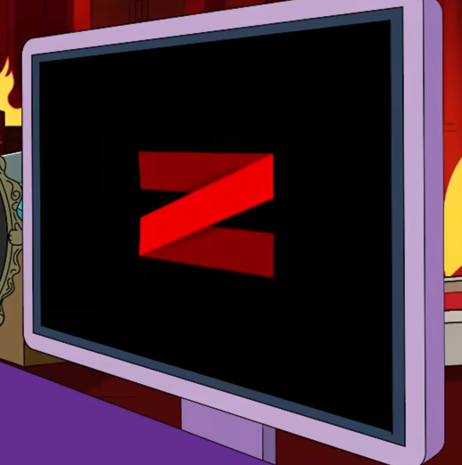 Meanwhile, the Netflix “N” logo flashes on Putin’s monitor, but it’s been turned on its side and made into a “Z.” The Latin-script letter Z is one of several symbols Russia’s military painted on the vehicles it sent into Ukraine. Within weeks of the full-scale invasion, Z became Moscow’s most recognizable pro-war propaganda motif, and it remains so to this day.