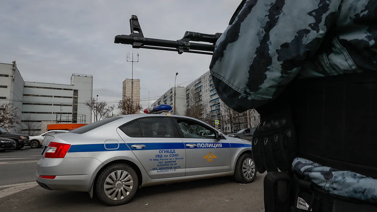 Сотрудники полиции патрулирующие улицу после теракта на концертной площадке "Крокус Сити Холл", спустя четыре дня после теракта в Красногорске, Подмосковье, Россия, 26 марта 2024 года. Фото: Юрий Кочетков/EPA-EFE