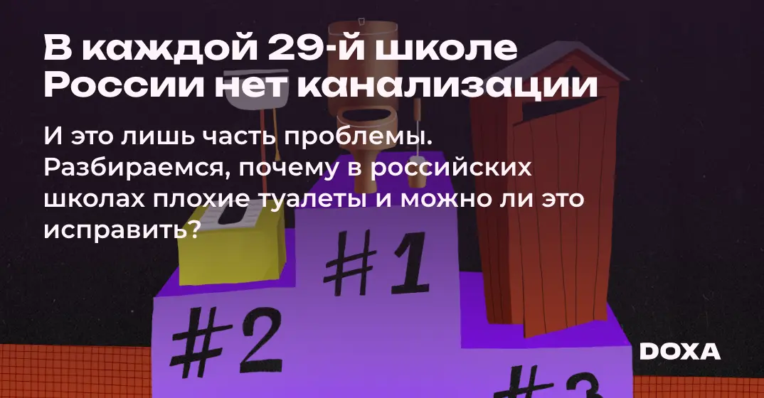 Во многих российских школах нет канализации, а там, где она есть, зачастую отсутствуют банальные удобства вроде перегородок или нормальных унитазов. Мы изучили данные Минпросвещения, поговорили с эксперт:ками и местными житель:ницами и разобрались в том, какие проблемы со школьными туалетами есть в России. А еще мы узнали, как плохие школьные туалеты влияют на школьни:ц и что нужно, чтобы ситуация изменилась к лучшему.