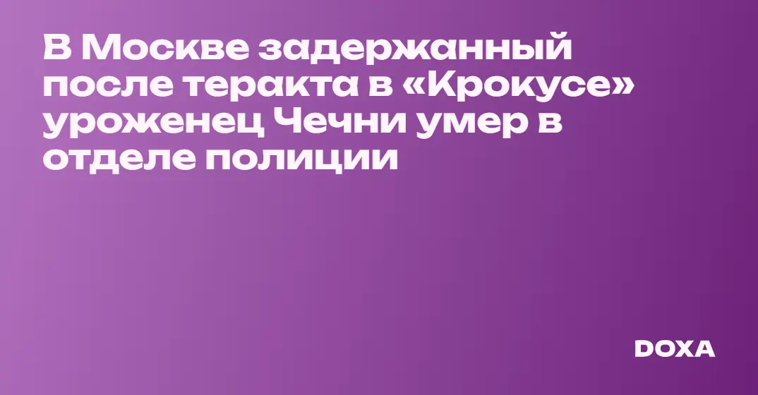 Погибшего Асхаба Успанова задержали 22 марта после теракта в «Крокус Сити Холле». Как сообщает издание «Агентство», Успанов умер в отделе полиции спустя несколько часов после задержания. Чеченская оппозиционная организация 1ADAT со ссылкой на свои источники сообщила, что Успанова запытали до смерти в день теракта. Мать Асхаба сообщила, что его похоронили в Чечне.