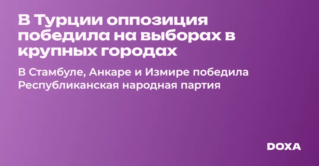31 марта на местных выборах в Турции в крупнейших городах победила оппозиционная Республиканская народная партия. Правящая Партия справедливости и развития не смогла набрать большинство голосов на мэрских выборах в Стамбуле, Анкаре, Измире и других городах.