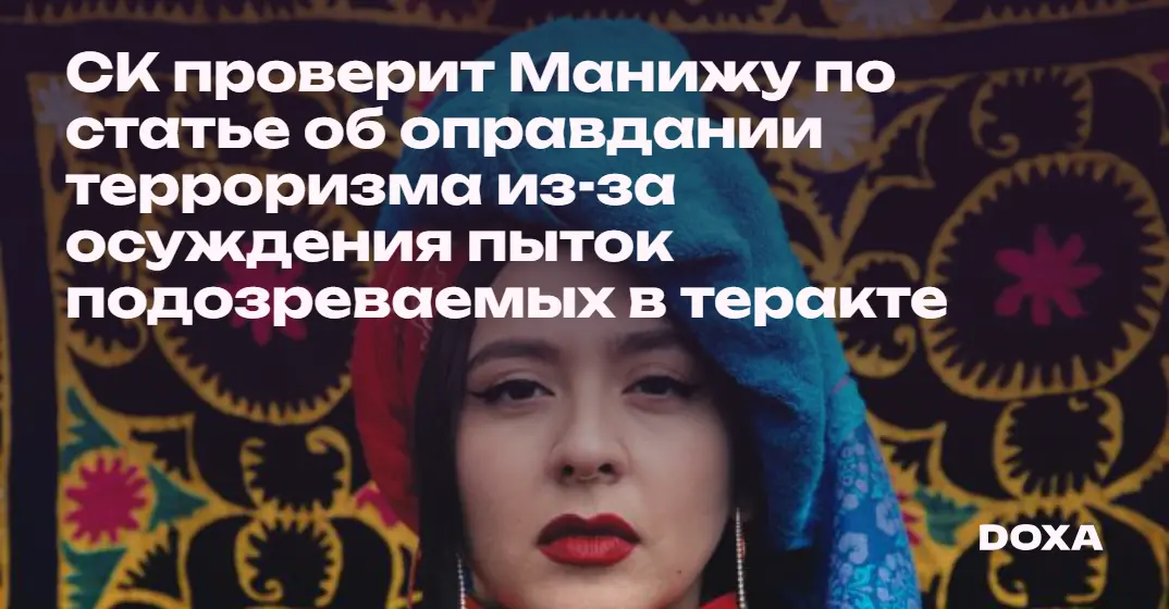 СК России проверит певицу Манижу по статье об оправдании терроризма из-за видео с осуждением пыток подозреваемых в теракте в «Крокус Сити Холл»