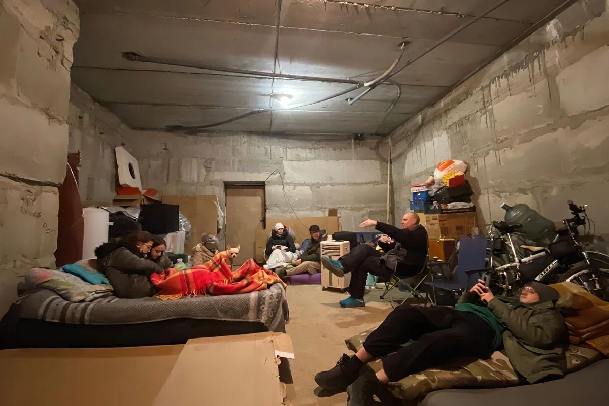 The children were afraid of the explosions, so they slept in the basement of our apartment building. It was cramped — several families and their children were sleeping there. On the third day of the occupation, the internet and mobile services stopped working properly. The Russians bombed the water tower, and we were left without running water, electricity, and eventually gas. We had to climb up to the very top of our nine-storey building to get a good enough signal to tell our relatives that we were still alive.