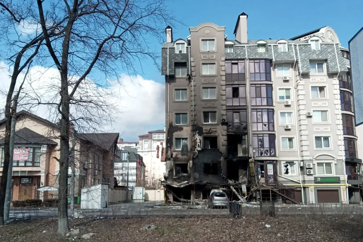 At the end of the first week, Ukrainian forces destroyed a Russian convoy on Vokzalna Street. The fighting was so fierce that even in the basement everything was shaking. Meanwhile, our neighbours kept telling us about how their friends or family members had been killed while trying to leave town. Their bodies couldn’t be retrieved and just lay there in the street.