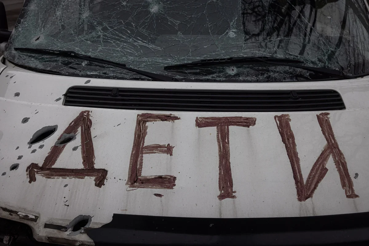 But someone freaked out and drove off first, followed by several others. We didn’t dare to follow them then, but another column of cars formed there the next day. People wore white armbands and wrote the word “children” on the car windows. Everybody tried to take on as many passengers as possible. We took another family from our building, so we had three women and three children in the car, plus my husband who was driving.
