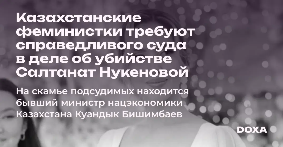 Казахстанские феминистки требуют справедливого суда в деле об убийстве Салтанат Нукеновой. На скамье подсудимых находится ее муж — бывший министр нацэкономики Казахстана Куандык Бишимбаев.