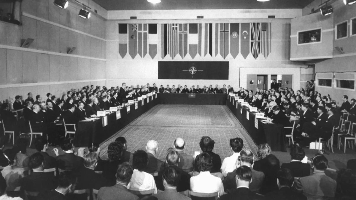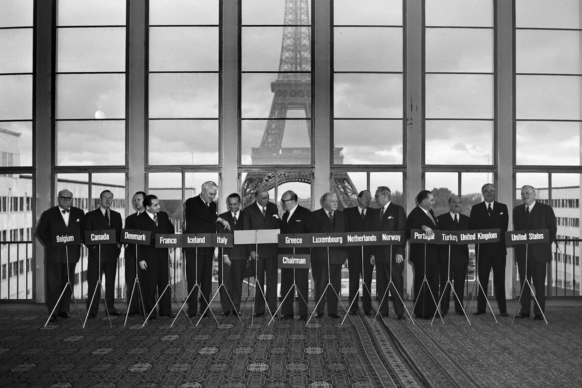 Заседание НАТО во дворце Шайо в Париже, на котором Федеративная Республика Германия была принята в альянс, 9 мая 1955 года. Фото: dpa picture alliance / Alamy / Vida Press