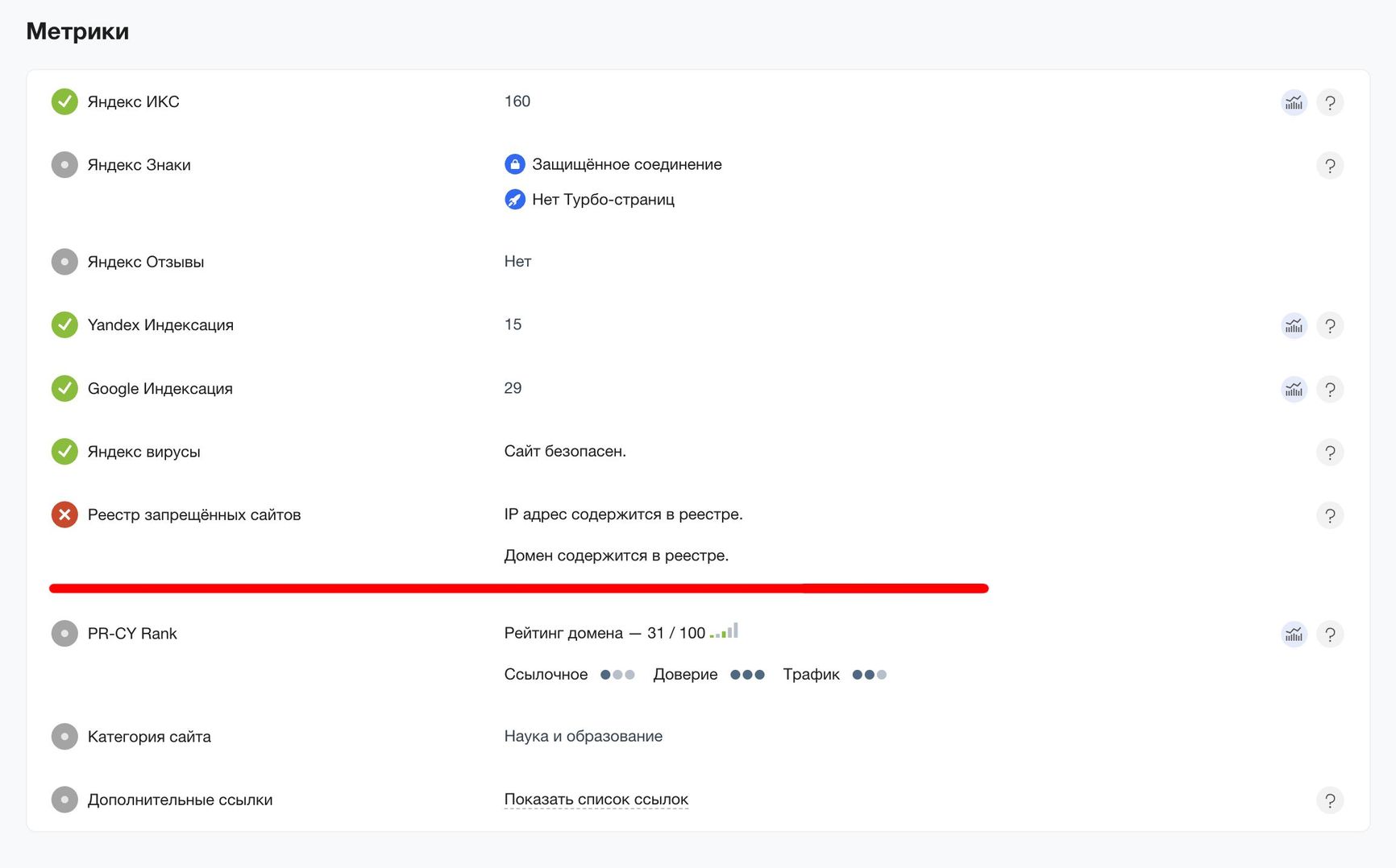 Metrics confirming the Year of Exchange website is blocked by Roskomnadzor due to being on the list of 'undesirable organizations'