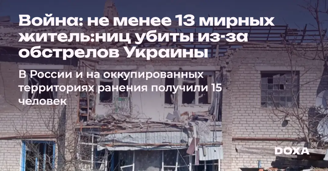 Война: не менее 13 мирных житель:ниц убиты из-за обстрелов Украины
