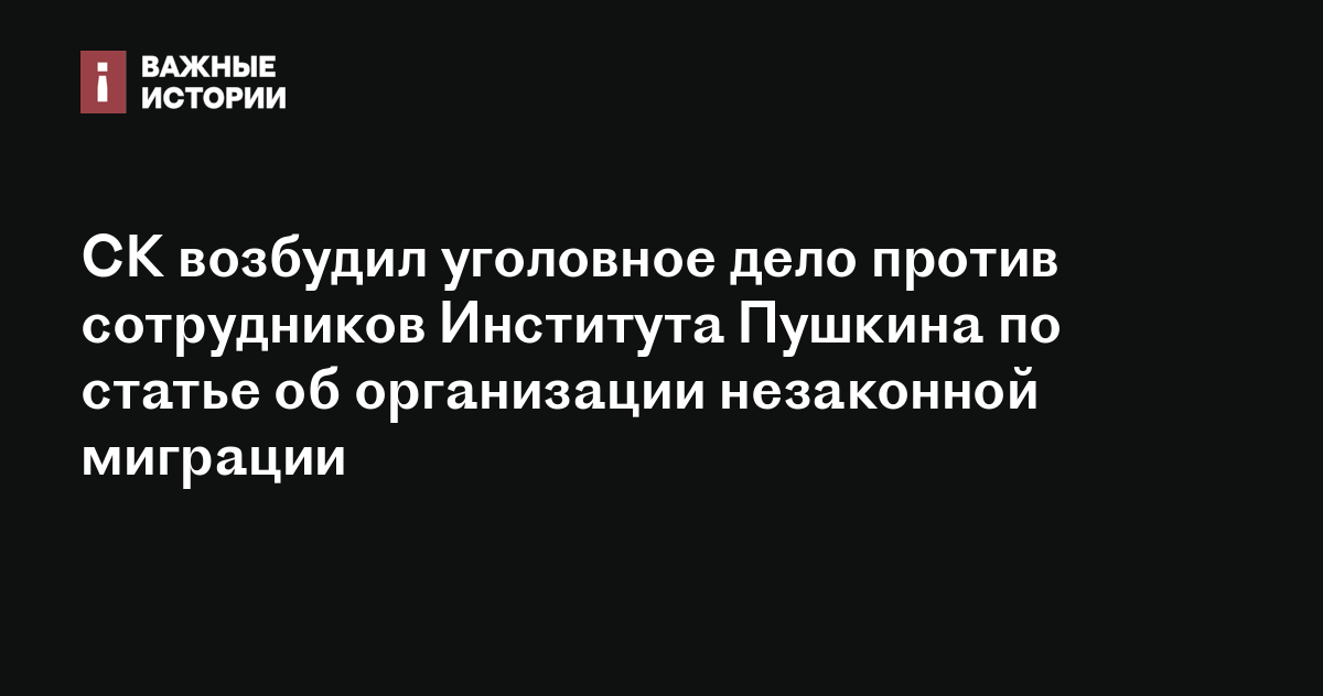 СК возбудил уголовное дело против сотрудников Института Пушкина по статье об организации незаконной миграции