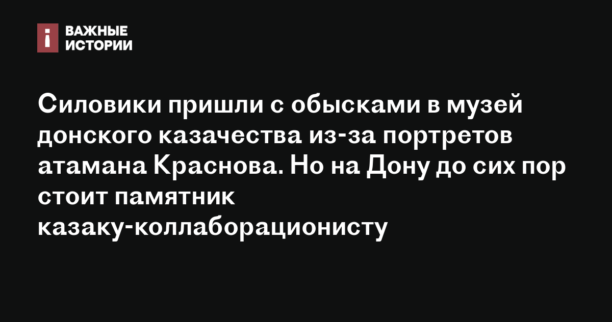 Силовики пришли с обысками в музей донского казачества из-за портретов атамана Краснова. Но на Дону до сих пор стоит памятник казаку-коллаборационисту