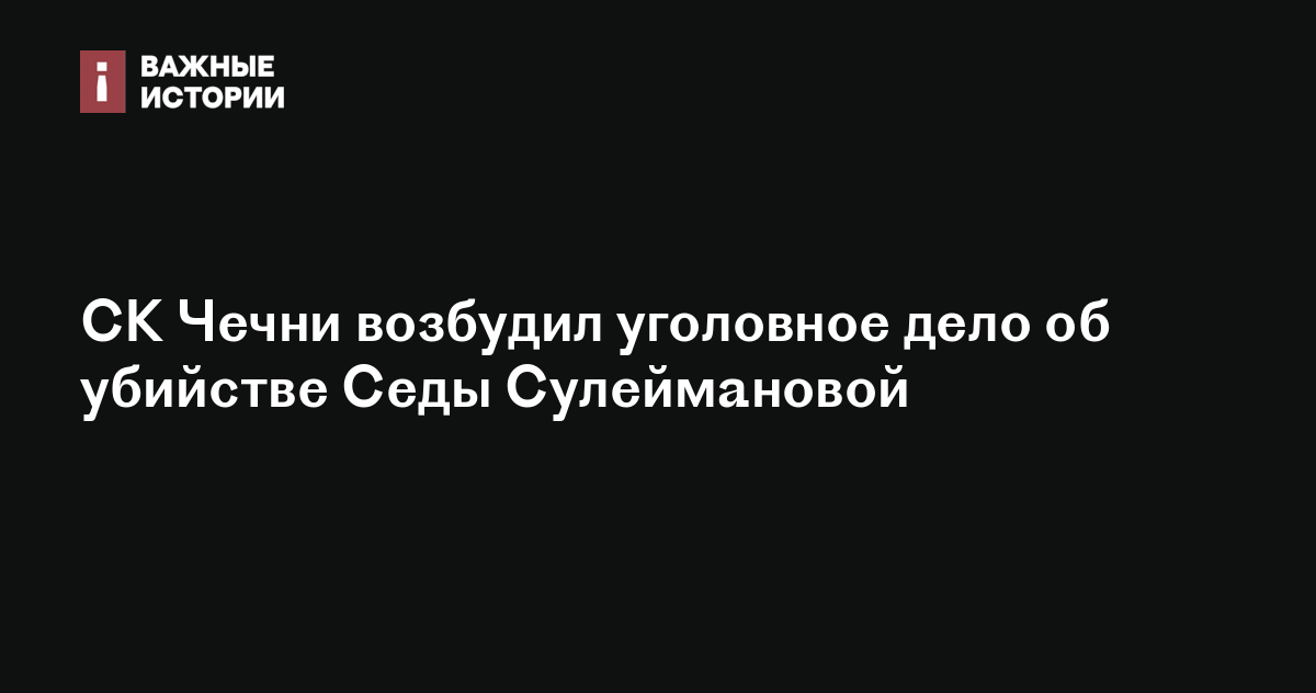 СК Чечни 25 марта возбудил уголовное дело об убийстве Седы Сулеймановой, сообщает правозащитная группа «СК SOS».