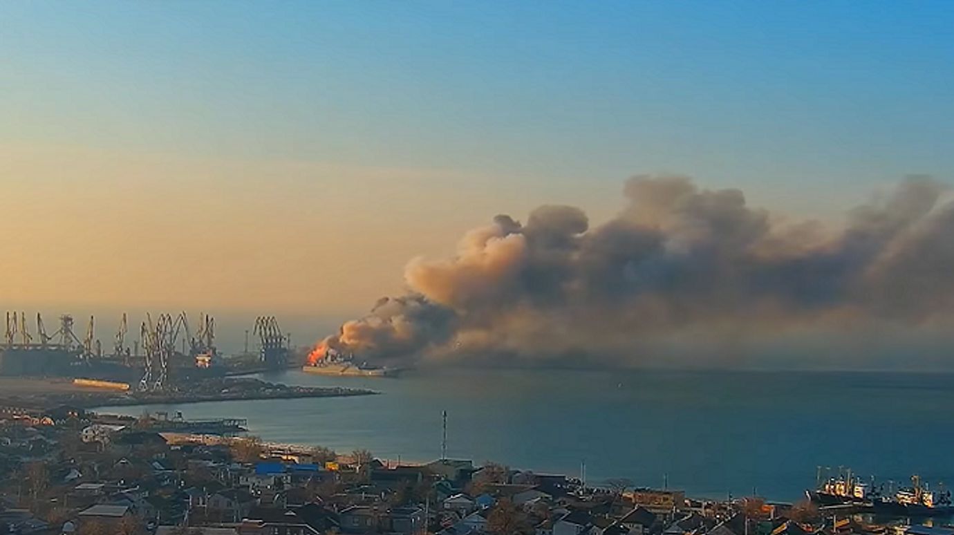 БДК «Саратов» горит после взрыва в Бердянске, 24 марта 2022 г.