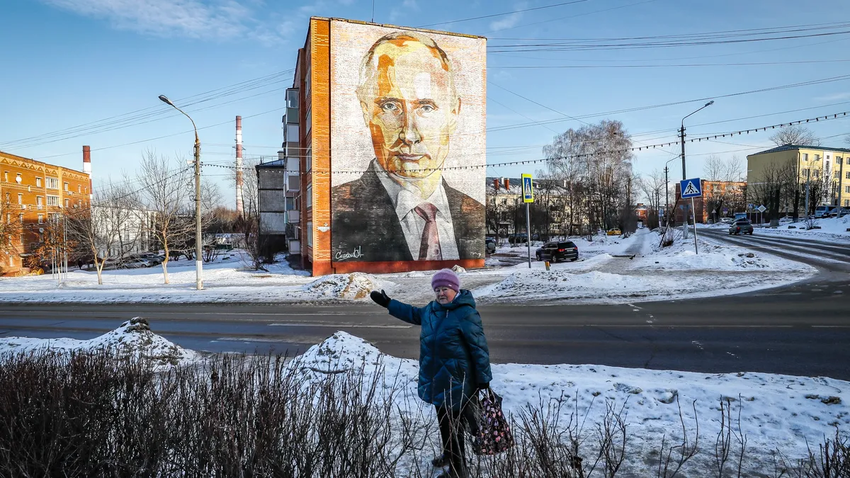 A mural depicting Russian President Vladimir Putin on the side of a residential building in Kashira, Moscow region, in January. Photo: EPA-EFE/YURI KOCHETKOV