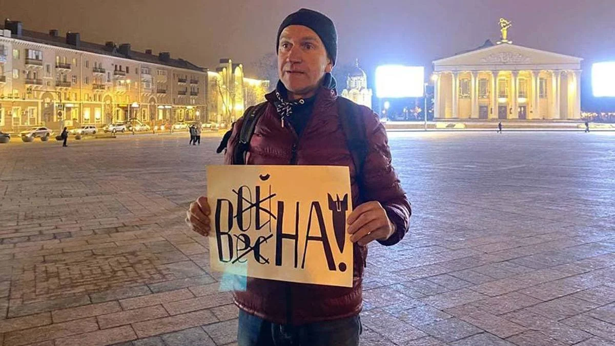 Александр Демиденко с пикетом в Белгороде. Фото: 7х7 / Telegram