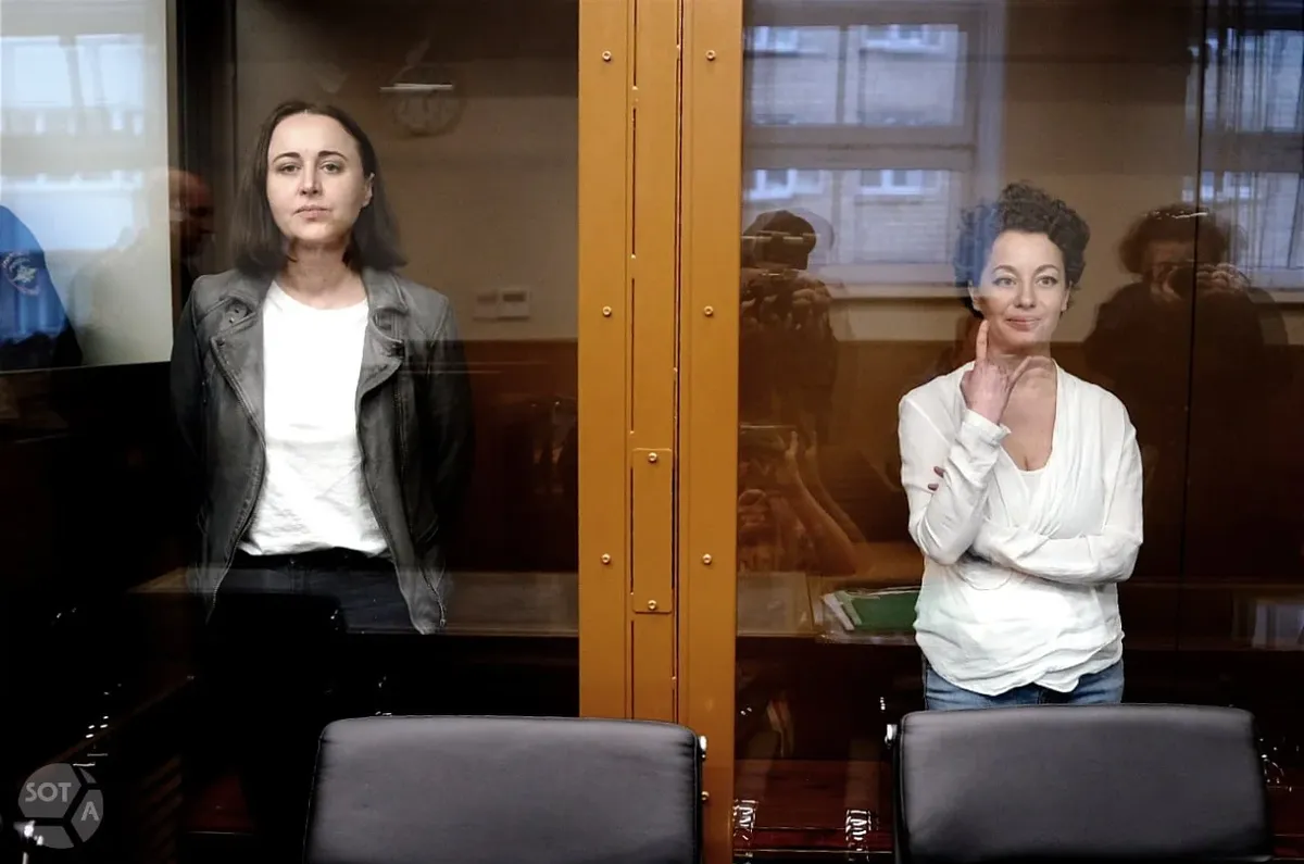 Yevgenia Berkovich and Svetlana Petriychuk in court following their sentence extension in April. Photo: SOTAvision