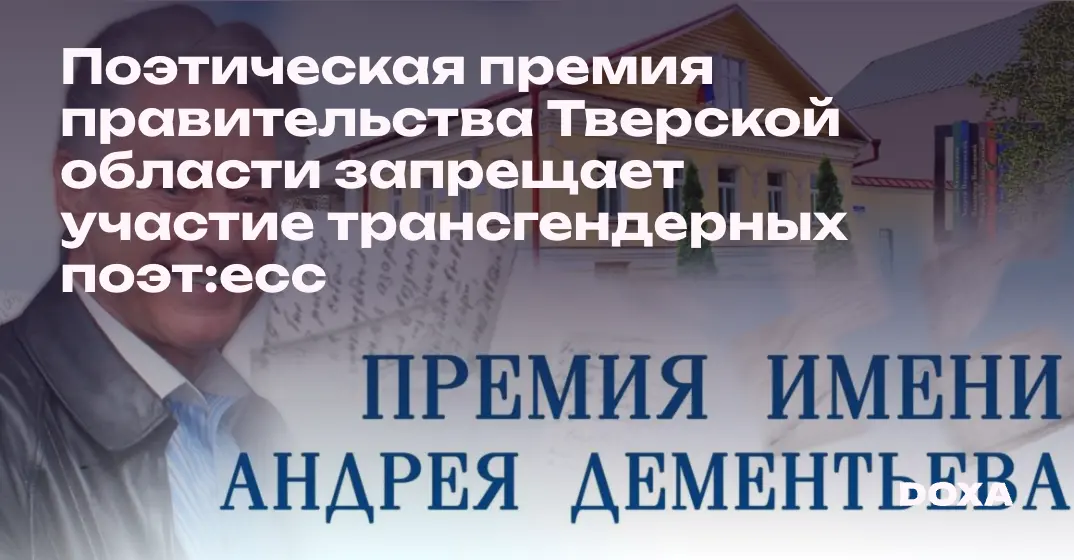 В требования поэтической премии правительства Тверской области включили запрет на выдвижение трансгендерных поэт:есс. Документ с правилами конкурса опубликовал государственный Дом поэзии Андрея Дементьева.