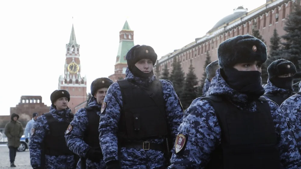 Russian police officers patrol the Red Square. Photo: EPA-EFE/MAXIM SHIPENKOV