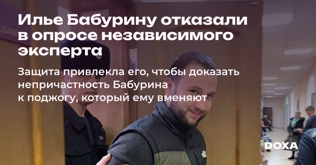 Второй Восточный окружной военный суд в Новосибирске отказал защите фигуранта дела об антивоенном поджоге Ильи Бабурина в назначении независимой экспертизы, сообщил правозащитный проект «Зона солидарности». Защита политзаключенного требовала опросить в суде независимого эксперта, чтобы доказать непричастность Бабурина к поджогу музыкальной школы, который ему вменяют.