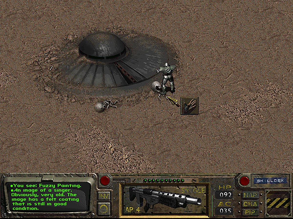 Fallout — изометрическая игра с видом сверху. Бои проходят в пошаговом режиме, а у персонажа есть очки действия для атаки и перемещения. Сейчас играть в Fallout слегка непривычно, но всё окупается интересным сюжетом и персонажами. Выходец из убежища решает конфликты между руководителями городов и бандитами, знакомится с гулями и Братством Стали, а также определяет судьбу Западного побережья Пустоши.