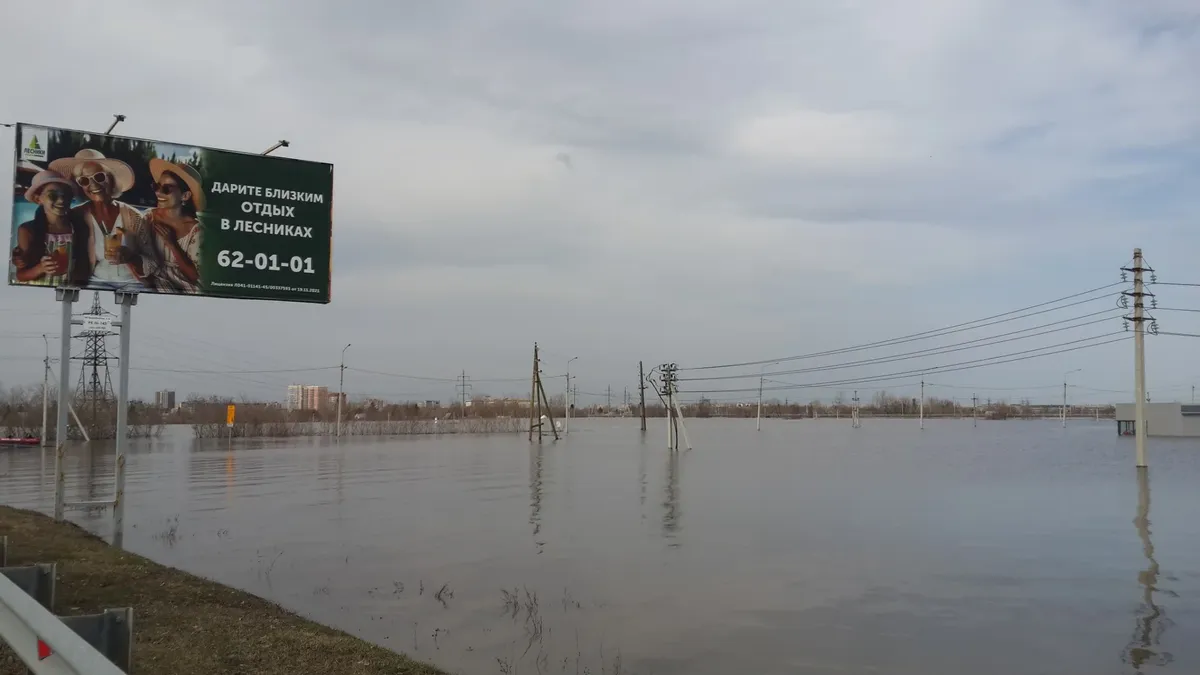 Билборд сейчас окружен курганским морем с плавающими в нем диванами, телевизорами, холодильниками. Нелепо торчит из грязных вод потопа. Торчат столбы, ЛЭП, высокие дорожные знаки — невысокие скрылись под водой.