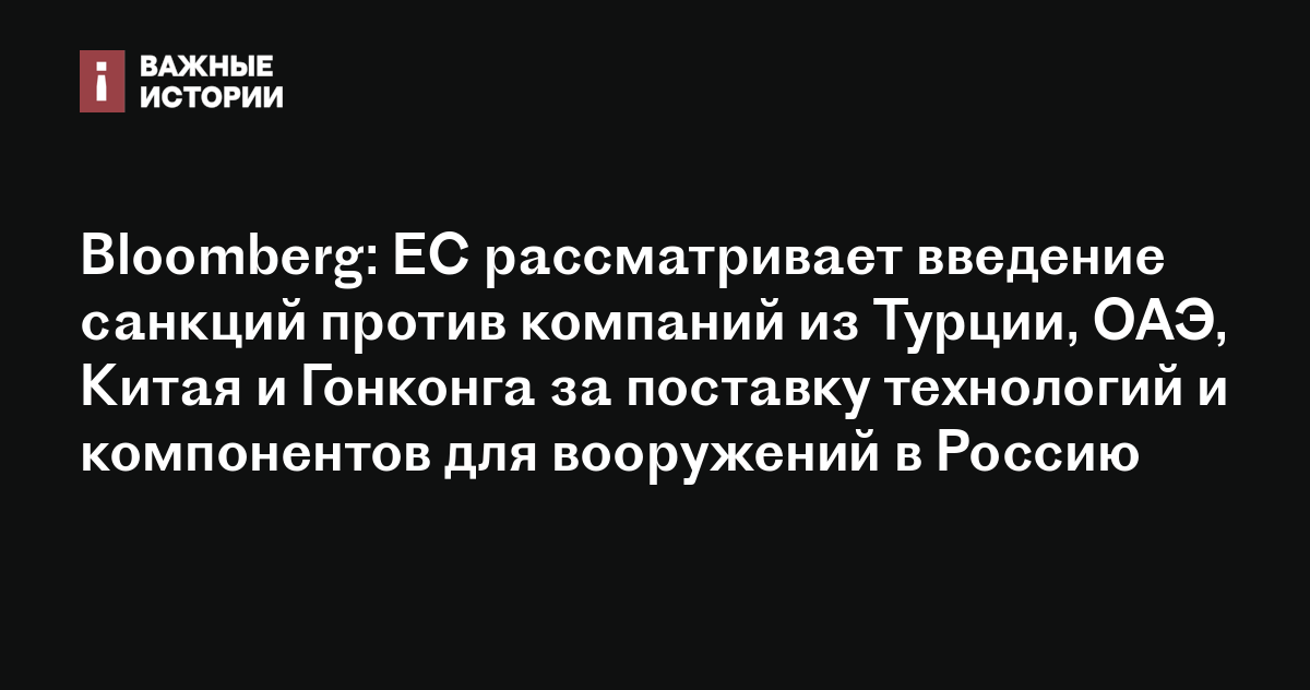 Bloomberg: ЕС рассматривает введение санкций против компаний из Турции, ОАЭ, Китая и Гонконга за поставку технологий и компонентов для вооружений в Россию