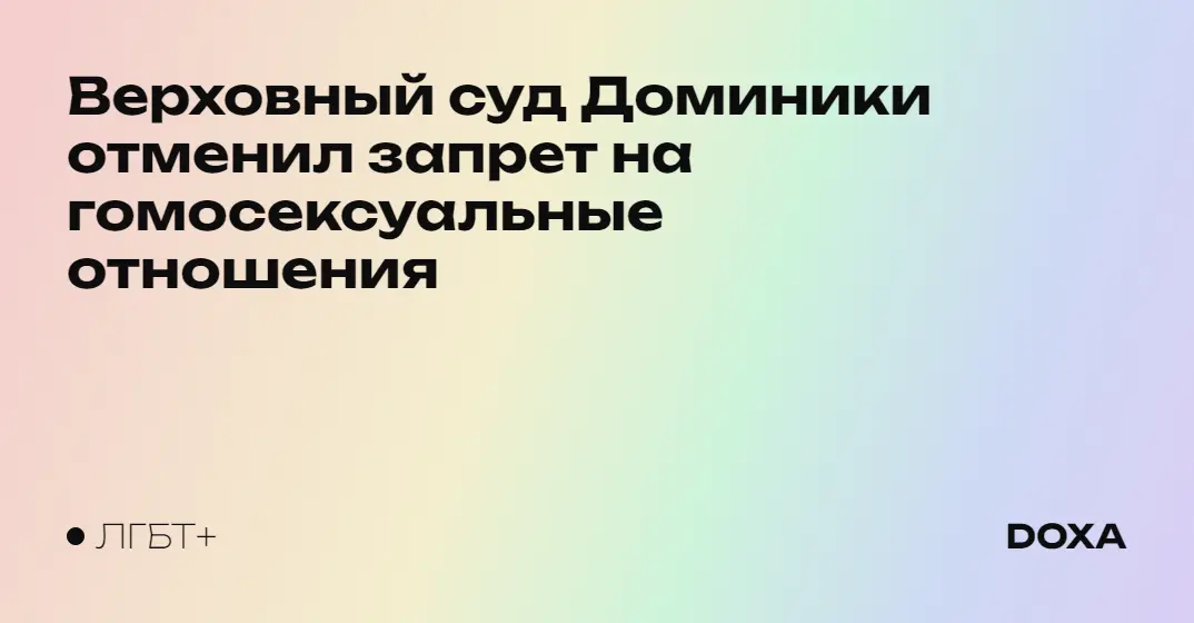 Верховный суд Доминики отменил запрет на гомосексуальные отношения. Суд постановил, что криминализация ЛГБТ+отношений противоречит конституции страны.
