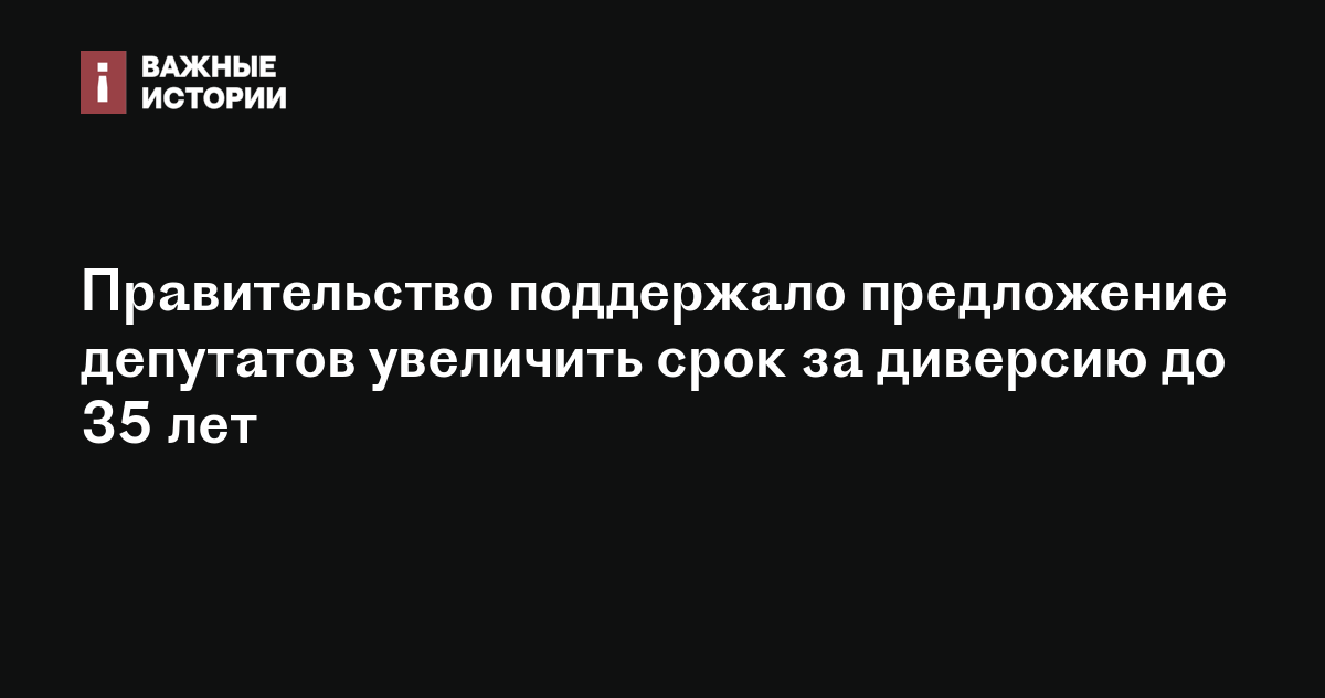 Правительство поддержало предложение депутатов увеличить срок за диверсию до 35 лет