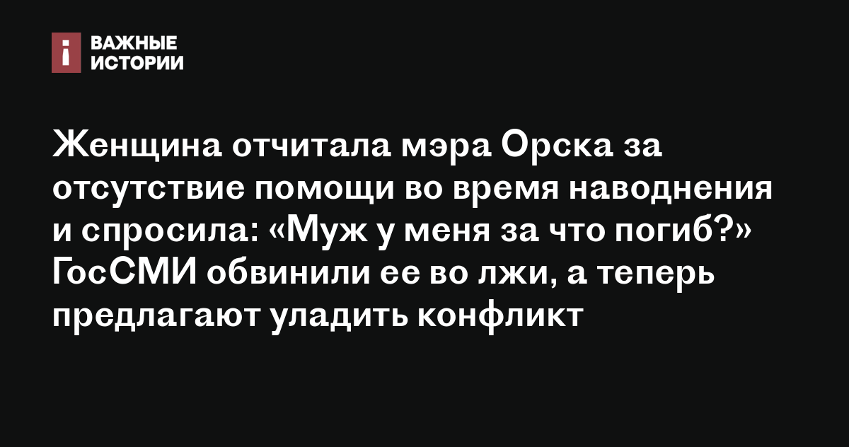 Женщина отчитала мэра Орска за отсутствие помощи во время наводнения и спросила: «Муж у меня за что погиб?» ГосСМИ обвинили ее во лжи, а теперь предлагают уладить конфликт