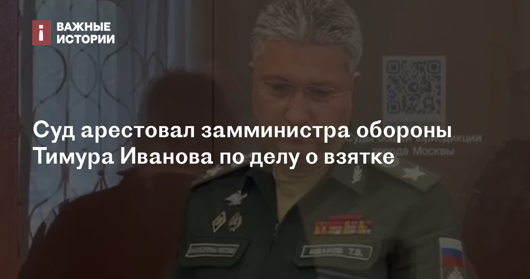 Басманный суд Москвы отправил под арест заместителя министра обороны Тимура Иванова и его друга Сергея Бородина, которых обвиняют в получении взятки в особо крупном размере (ч. 6 ст. 290 УК). Об этом сообщает объединенная пресс-служба судов города.