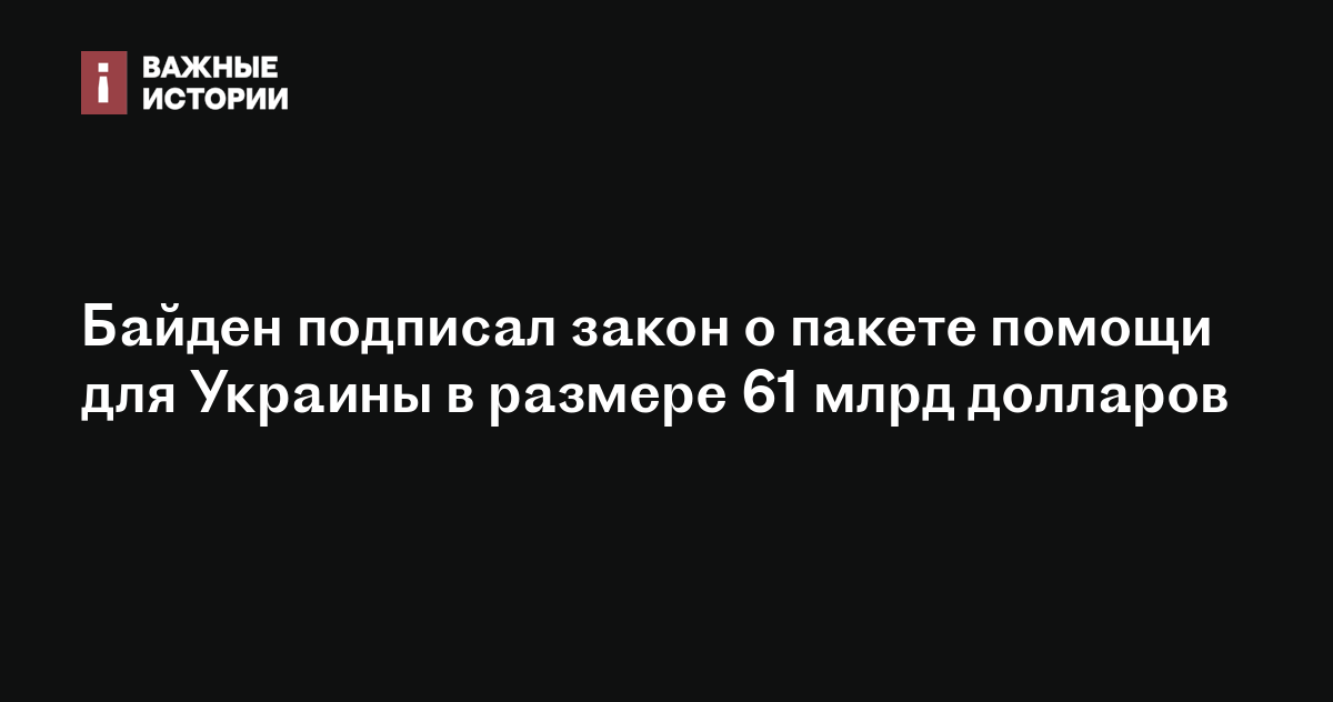 Байден подписал закон о пакете помощи для Украины в размере 61 млрд долларов